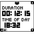 ![]() | DURATION (Varighed) Varigheden af din træning TIME OF DAY (Klokkeslæt) Klokkeslæt. |
