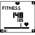 ![]() | Fitness (Kondition) (hjertesymbolet er på den højre side af linjen) Din nuværende puls. Du træner i en konditionsforbedrende zone. |