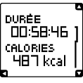 ![]() | DURÉE Durée de votre séance d'entraînement CALORIES Nombre de calories brûlées pendant la séance d'entraînement. |
