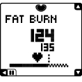 ![]() | FATBURN (širdutės simbolis kairėje pusėje) Riebalų deginimo zonoje intensyvumas yra žemas ir pagrindinis energijos šaltinis yra riebalai Todėl riebalai deginami efektyviau, metabolizmas, pagrinde riebalų oksidacija, padidėja. |