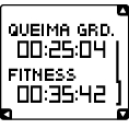 ![]() | QUEIMA DE GORDURA Tempo gasto na zona de queima de gordura FITNESS Tempo gasto na zona de melhoria da fitness |