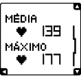 ![]() | MÉDIA Frequência cardíaca média durante a sessão de treino MÁXIMA Frequência cardíaca máxima durante a sessão de treino |
