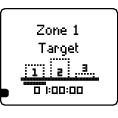 Press and to view your target training time for three different target intensity zones. Press to change the view. See the following page for more information on the zones.