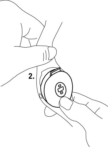 - Pásek nasadíte tak, že vložíte dolní stranu zařízení na místo do pásku.