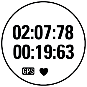 Durante l’allenamento, è possibile cambiare i display allenamento con il pulsante DESTRO. I display allenamento disponibili e i dati mostrati dipendono dallo sport selezionato. È possibile definire le impostazioni specifiche per ogni profilo sport nel servizio web Polar Flow, ad esempio creare display allenamento personalizzati. Per ulteriori informazioni, consultare Profili sport nel servizio web Flow.