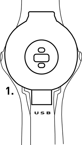- Вставьте нижний край устройства в соответствующий разъем на браслете.