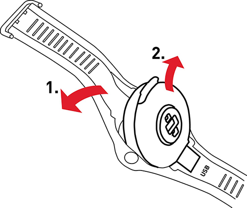 - Чтобы извлечь устройство из браслета, согните браслет со стороны пряжки.
