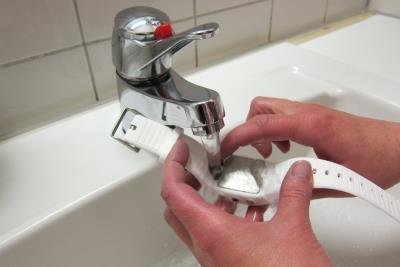 Nejlepší způsob, jak udržovat USB port v čistotě, je opláchnout ho po každém tréninku vlažnou vodou, takto: