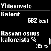 Harjoituksen aikana poltettujen kalorien määrä ja rasvan osuus kulutetuista kaloreista prosentteina. |