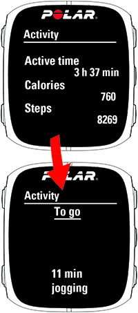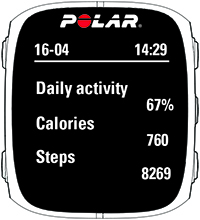 | For at se dagens akkumulerede aktivitet mere detaljeret skal du åbne menuen Min dag ved at trykke på START. Din M430 viser dig følgende information: | |