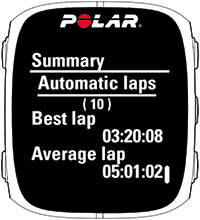 O número de voltas manuais, a melhor volta e a duração média de uma volta. Pressione para obter mais detalhes. |