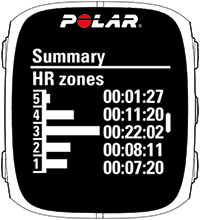 Assim que encerrar o treino, você receberá um resumo de sua sessão de treino no M430. Obtenha uma análise mais detalhada e ilustrada no aplicativo ou serviço web Polar Flow.