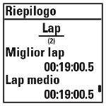 Numero di lap automatici, miglior lap e durata media di un lap automatico. Premere per ulteriori dettagli. |