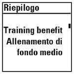Riscontro sotto forma di testo delle prestazioni. Il riscontro si basa sulla distribuzione del tempo di allenamento nelle zone di frequenza cardiaca, sul consumo delle calorie e sulla durata della sessione. Premere per ulteriori dettagli.