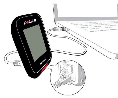 - USB 포트의 고무 커버를 벗기세요. 마이크로 USB 연결 단자를 M460의 USB 포트에 꽂고, 케이블의 다른 쪽 끝을 PC에 꽂으세요.