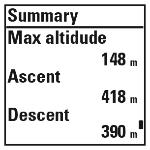 Maximum magasság, felfelé megtett méterek és lefelé megtett méterek. |