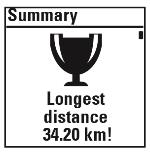 Az M460 mindig megjutalmazza Önt amikor eléri Personal best (személyes legjobb) eredményét átlagsebességben/-tempóben, távolságban vagy kalóriában. A Personal best (Személyes rekordok) eredményei minden sport profilon külön kezeltek. |