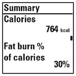 Az edzés során elégetett kalóriák és a kalóriák zsírégetési %-a |