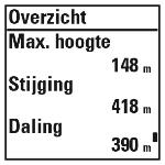 Maximale hoogte, gestegen en gedaald in meter of voet. |
