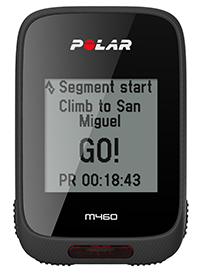 Če imate račun Strava Premium, lahko na napravi Polar M460 aktivirate funkcijo Strava Live Segments®. Ko aktivirate segmente Strava Live Segments, boste prek naprave M460 prejeli opozorilo, da se približujete enemu od vaših priljubljenih segmentov Strava. Na napravi M460 se bodo v realnem času izpisali podatki o vaši učinkovitosti skupaj s podatki, ali ste pred svojim osebnim najboljšim (PR) časom segmenta ali za njim zaostajate. Po koncu segmenta se rezultati takoj izračunajo in prikažejo na napravi M460, vendar pa morate za ogled končnih rezultatov obiskati spletno mesto Strava.com.