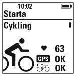 Cykelsensorer: OK visas bredvid cykelikonen när M460 har hittat sensorsignalerna. Om du har kopplat sensorer till mer än en cykel kommer du att se en siffra bredvid cykelikonen som anger cykeln som används. M460 väljer cykeln till vilken den närmaste sensorn är kopplad.
