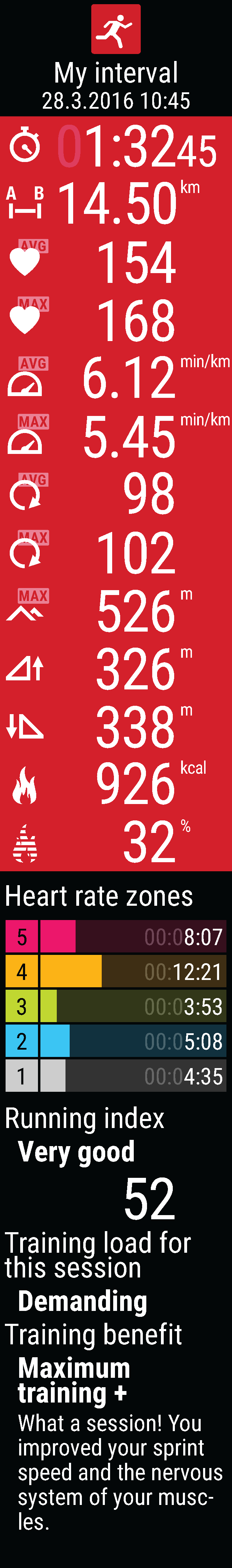 跑步指數:您的跑步成績等級與數值。從章節 Running Index 瞭解更多。