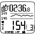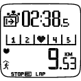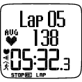 | Press to record a lap. The display will show: Lap number Average heart rate of the lap Lap time |