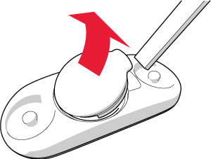 - Fjern det gamle batteriet fra batteridekselet med en spiss, lang gjenstand i passende størrelse, for eksempel en tannpirker. Vi anbefaler bruk av et verktøy som ikke er av metall. Vær forsiktig slik at du ikke skader batteridekselet.