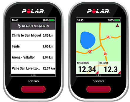 - Strava Live Segment-visningen legges til som en treningsvisning når segmentet starter. Du får opp resultatdata i sanntid på V650 der du kan se informasjon om Strava-segmenter og data for å administrere innsatsen din.