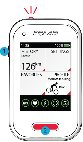 Dodawaj segmenty pobrane z serwisu Strava oraz trasy do ulubionych w serwisie internetowym Flow i synchronizuj je z V650. - PROFIL: Wybierz profil i rower do przejazdu.