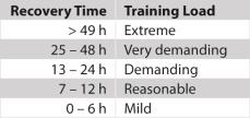 V následující tabulce naleznete odhadovanou potřebu regenerace při různých stupních tréninkové zátěže.