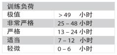 从该图表中查看不同的训练负荷所需的预计恢复时间。 |