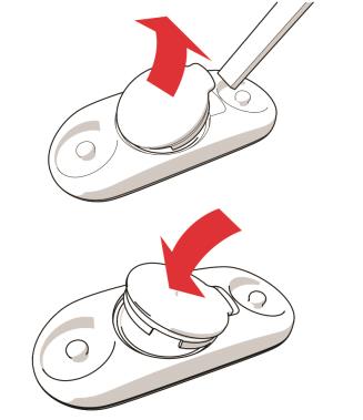 4. 將電池蓋上的突出部與傳感器上的槽對準並將電池蓋按回固定到位。 您會聽到咔嗒一聲。
