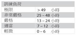 請在本表中查看不同訓練負荷的預估恢復所需時間。