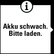 Akku ist schwach. Bitte laden.