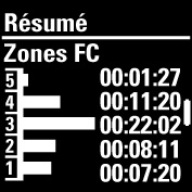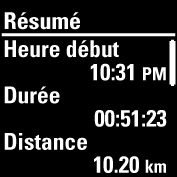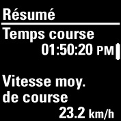 Les informations figurant dans le résumé dépendent du profil sport et des capteurs utilisés. Les informations suivantes sont présentées :