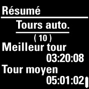 Tours automatiques Meilleur tour Tour moyen Appuyez sur pour plus d'informations. |