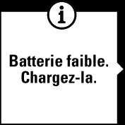Batterie faible. Chargez Le niveau de charge de la batterie est faible. Il est recommandé de charger le V800. |