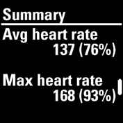 - Prosječnu i maksimalnu brzinu otkucaja srca i ukupne zone brzine otkucaja srca