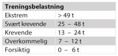 Kontroller de anslåtte restitusjonsbehovene for ulike treningsbelastninger i denne tabellen. |