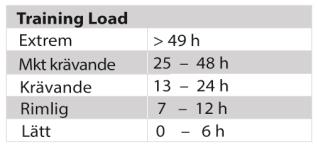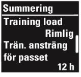 Efter varje träningspass i träningssummeringen får du en beskrivning av din träningsansträngning och den beräknade tid som behövs för att återhämta sig från träningspasset. |