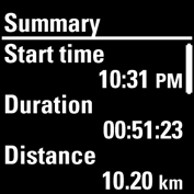 Multisport Summary (Birden Fazla Spor Özeti), tüm egzersiz seansı ile ilgili genel bilgiler verir. Süre Mesafe Tüm seansla ilgili daha fazla bilgi için 'a basın. Spora özel ayrıntılı bilgileri görmek için ile gezinin ve spor özetinde 'a basın. |