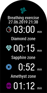 - Etter øvelsen ser du resultatene dine på klokken i form av tiden du har brukt i de ulike serenity-sonene.