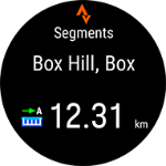 Ko se približate segmentu (pri kolesarjenju na 200 metrov ali manj oz. pri teku na 100 metrov ali manj), se v uri prikažeta opozorilo ter razdalja, ki se bo do zaključka segmenta zmanjševala. Segment lahko prekličete tako, da v uri pritisnete gumb za nazaj.