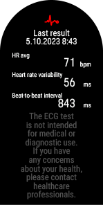 A legfrissebb teszteredményeidet megtekintheted az órádon a Tesztek > EKG > Legfrissebb eredmények alatt.