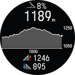 Tijdens de training kun je met OMHOOG/OMLAAG door de trainingsweergaven bladeren. Welke trainingsweergaven beschikbaar zijn en welke gegevens daarin worden weergegeven, is afhankelijk van de gekozen sport en je bewerkingen van het gekozen sportprofiel.
