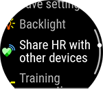 Selecciona Dejar de compartir. También dejas de compartir la FC al salir del modo de preentrenamiento o detener la grabación del entrenamiento.