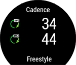 Nombre de mouvements des bras pour la nage libre : Votre montre enregistre vos nombres de mouvements des bras (combien vous effectuez de mouvement des bras par minute) moyens et maximal pour votre session d'entraînement.