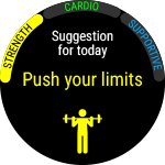 Da qui puoi avviare le sessioni di allenamento. Tocca il display per accedere alla modalità Pre-allenamento e seleziona il profilo sport da utilizzare.