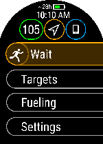 I Innstillinger finner du flere treningsinnstillinger. Hvilke alternativer som vises avhenger av sportsaktiviteten du har valgt og om du bruker GPS. Du kan for eksempel legge til tidtakere i treningsvisningene. Strømsparingsalternativer angis også her. Etter at du har gjort valget ditt, går du tilbake til førtreningsmodus ved å trykke på TILBAKE-knappen. Du finner mer informasjon under Treningsinnstillinger.